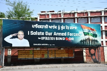 'ਆਪ੍ਰੇਸ਼ਨ ਸਿੰਦੂਰ' ਤੋਂ ਬਾਅਦ ਸੰਸਦ ਮੈਂਬਰ ਅਰੋੜਾ ਨੇ ਹਥਿਆਰਬੰਦ ਬਲਾਂ ਨੂੰ ਸਲਾਮੀ ਦੇਣ ਲਈ ਬਦਲੇ ਹੋਰਡਿੰਗ