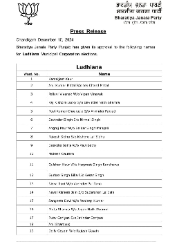 ਭਾਜਪਾ ਨੇ 93 ਵਾਰਡਾਂ ਵਿੱਚ ਆਪਣੇ ਉਮੀਦਵਾਰਾਂ ਦਾ ਐਲਾਨ ਕੀਤਾ, 2 ਦਾ ਐਲਾਨ ਬਾਕੀ, ਕੁਝ ਵਾਰਡਾਂ ਵਿੱਚ ਬਗਾਵਤ ਦੇ ਅਸਾਰ!