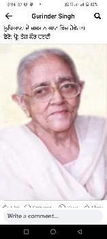 ਪ੍ਰਸਿੱਧ ਪੰਥਕ ਕਵੀ ਸਵ. ਰਾਮ ਨਰੈਣ ਸਿੰਘ ਦਰਦੀ ਦੇ ਧਰਮਪਤਨੀ ਉੱਘੇ ਸਿੱਖਿਆ ਸ਼ਾਸਤਰੀ ਪ੍ਰੋ. ਤੇਜ ਕੌਰ ਦਰਦੀ ਦਾ ਦੇਹਾਂਤ