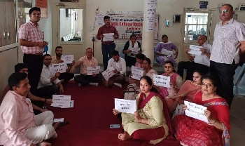 7ਵੇਂ ਪੇ ਕਮਿਸ਼ਨ ਨੂੰ ਲਾਗੂ ਨਾ ਕਰਨ ਦੇ ਵਿਰੋਧ ਵਿੱਚ ਕਾਲਜ ਦੇ ਪ੍ਰੋਫੈਸਰ ਲੁਧਿਆਣਾ (ਵਰਮਾ) - ਆਰੀਆ ਕਾਲਜ ਟੀਚਰਜ਼ ਯੂਨੀਅਨ, ਲੁਧਿਆਣਾ ਵਲੋਂ ਅੱਜ ਆਰੀਆ ਕਾਲਜ ਲੁਧਿਆਣਾ ਵਿਖੇ ਪ੍ਰਿੰਸੀਪਲ ਦੇ ਦਫ਼ਤਰ ਸਾ...