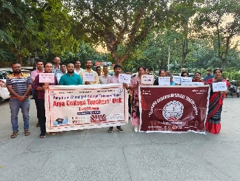 ਆਰਿਆ ਕਾਲਜ ਟੀਚਰਜ਼ ਯੂਨੀਅਨ ਲੁਧਿਆਣਾ ਵੱਲੋਂ ਲਗਾਇਆ ਗਿਆ ਧਰਨਾ