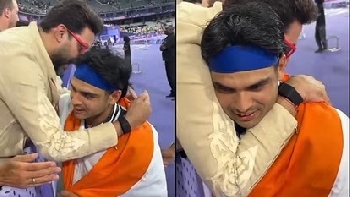 ਬਾਲੀਵੁੱਡ ਅਦਾਕਾਰ ਅਭਿਸ਼ੇਕ ਬੱਚਨ ਨੇ ਓਲੰਪਿਕ 2024 ਵਿੱਚ ਨੀਰਜ ਚੋਪੜਾ ਨੂੰ ਗਲੇ ਲਗਾਇਆ, ਚਾਂਦੀ ਦਾ ਤਗਮਾ ਜਿੱਤਣ 'ਤੇ ਦਿੱਤੀ ਵਧਾਈ