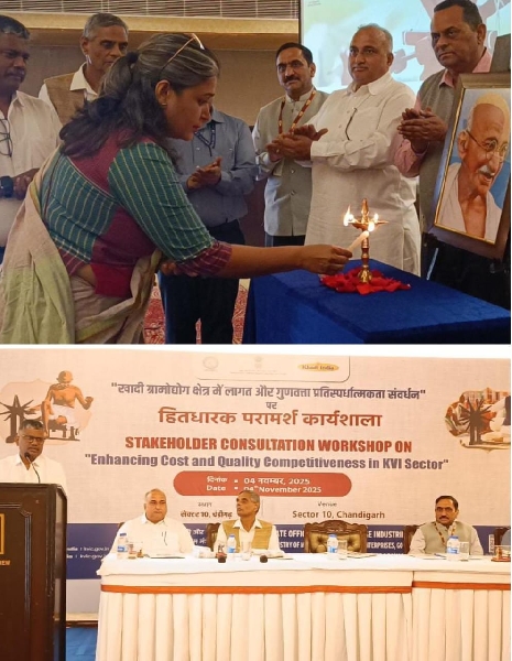 ਕੇਵੀਆਈਸੀ ਚੰਡੀਗੜ੍ਹ ਵਿੱਚ ਲਾਗਤ ਅਤੇ ਗੁਣਵੱਤਾ ਮੁਕਾਬਲੇਬਾਜ਼ੀ ਵਧਾਉਣ 'ਤੇ ਸਟੇਕਹੋਲਡਰਜ਼ ਕੰਸਲਟੇਸ਼ਨ ਵਰਕਸ਼ਾਪ ਦਾ ਆਯੋਜਨ ਕੀਤਾਚੰਡੀਗੜ੍ਹ, 4 ਨਵੰਬਰ: ਖਾਦੀ ਅਤੇ ਗ੍ਰਾਮ ਉਦਯੋਗ ਕਮਿਸ਼ਨ (ਕੇਵੀਆਈਸੀ), ਅੰਬਾਲਾ/ਚੰਡੀਗੜ੍ਹ...