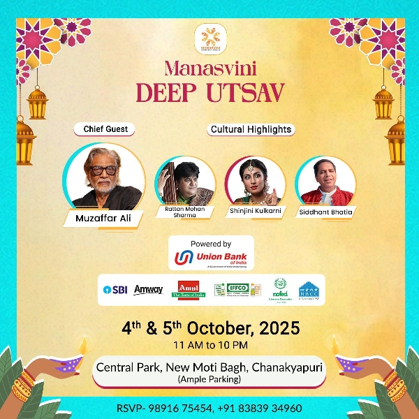 ਨਿਊ ਮੋਤੀ ਬਾਗ ਕਲੱਬ ਦੀ ਮਹਿਲਾ ਸ਼ਾਖਾ, ਮਨਸਵਿਨੀ 4 ਅਤੇ 5 ਅਕਤੂਬਰ, 2025 ਨੂੰ ਦੀਪ ਉਤਸਵ - ਦੀਵਾਲੀ ਮੇਲਾ 2025 ਦਾ ਇੱਕ ਸ਼ਾਨਦਾਰ ਆਯੋਜਨ ਕਰੇਗੀਭਾਰਤ ਸਰਕਾਰ ਦੇ ਸੱਭਿਆਚਾਰ ਮੰਤਰਾਲੇ, ਇੰਡੋ-ਤਿੱਬਤੀ ਸਰਹੱਦੀ ਪੁਲਿਸ (IT...