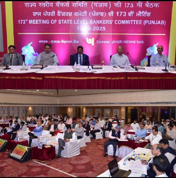 ਚੰਡੀਗੜ੍ਹ, 12 ਅਗਸਤ, (ਜ਼ਿ ਪੰ) - ਰਾਜ ਪੱਧਰੀ ਬੈਂਕਰਸ ਕਮੇਟੀ (SLBC), ਪੰਜਾਬ ਦੀ 173ਵੀਂ ਮੀਟਿੰਗ ਪੰਜਾਬ ਨੈਸ਼ਨਲ ਬੈਂਕ ਦੇ ਕਾਰਜਕਾਰੀ ਨਿਦੇਸ਼ਕ ਐੱਮ. ਪਰਮਸਿਵਮ ਦੀ ਪ੍ਰਧਾਨਗੀ ਹੇਠ ਹੋਟਲ ਮਾ...