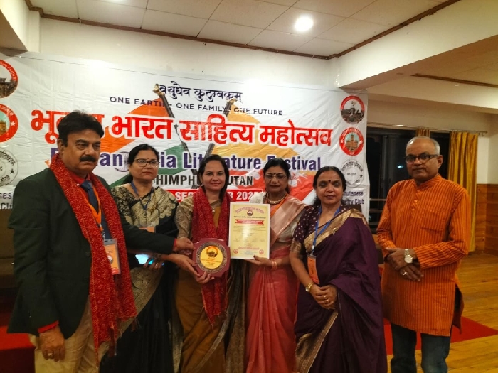 ਡਾ. ਜਸਪ੍ਰੀਤ ਕੌਰ ਫਲਕ ਨੂੰ ਭੂਟਾਨ-ਭਾਰਤ ਸਾਹਿਤ ਉਤਸਵ ਵਿੱਚ ਸਨਮਾਨਿਤ ਕੀਤਾ ਗਿਆਲੁਧਿਆਣਾ, 28 ਸਤੰਬਰ (ਸਰਬਜੀਤ) - ਹਿੰਦੀ ਦਿਵਸ ਦੇ ਮੌਕੇ 'ਤੇ ਕ੍ਰਾਂਤੀਧਾਰਾ ਸਾਹਿਤ ਅਕਾਦਮੀ ਦੀ ਸਰਪ੍ਰਸਤੀ ਹੇਠ ਭੂਟਾਨ ਦੀ ਰਾਜਧਾਨੀ ਥਿੰ...