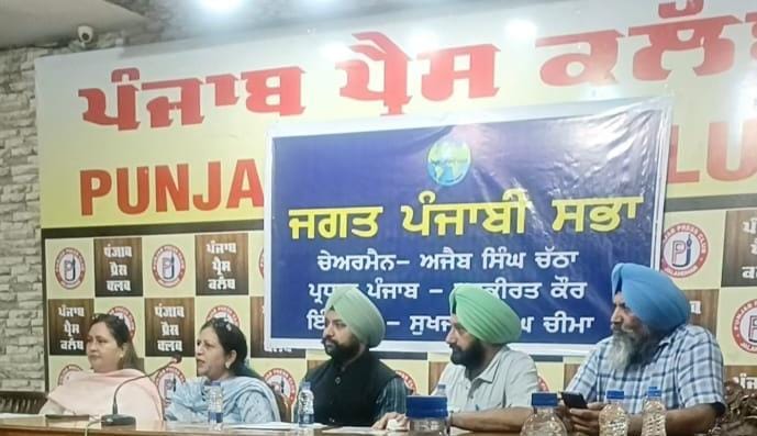 ਜਲੰਧਰ 1ਜੂਨ (ਰਾਕੇਸ਼ ਅਰੋੜਾ) ਜਗਤ ਪੰਜਾਬੀ ਸਭਾ ਕੈਨੇਡਾ ਦੀ ਪੰਜਾਬ ਪ੍ਰਧਾਨ ਹਰਕੀਰਤ ਕੌਰ, ਇੰਚਾਰਜ ਸੁਖਜੀਤ ਸਿੰਘ ਚੀਮਾ, ਪ੍ਰਿੰਸੀਪਲ ਤਰਸੇਮ ਸਿੰਘ, ਪ੍ਰੋਫੈਸਰ ਸੁਖਦੇਵ ਸਿੰਘ ਰੰਧਾਵਾ ਨੇ ਪ੍ਰੈੱਸ ਨੂੰ ਸੰਬ...