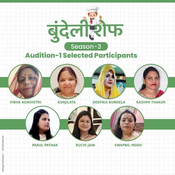 *“ਬੁੰਦੇਲੀ ਸ਼ੈੱਫ ਸੀਜ਼ਨ 3: ਬੁੰਦੇਲਖੰਡ ਇੱਕ ਵਾਰ ਫਿਰ ਬੁੰਦੇਲ ਪਕਵਾਨਾਂ ਦੀ ਖੁਸ਼ਬੂ ਲੈ ਕੇ ਆਇਆ, ਕੁਆਰਟਰ ਫਾਈਨਲ ਵਿੱਚ 7 ਹੋਣਹਾਰ ਪ੍ਰਤਿਭਾਵਾਂ”*- ਪਹਿਲੇ ਆਡੀਸ਼ਨ ਵਿੱਚ 7 ਹੋਣਹਾਰ ਬੁੰਦੇਲ ਪਕਵਾਨ ...