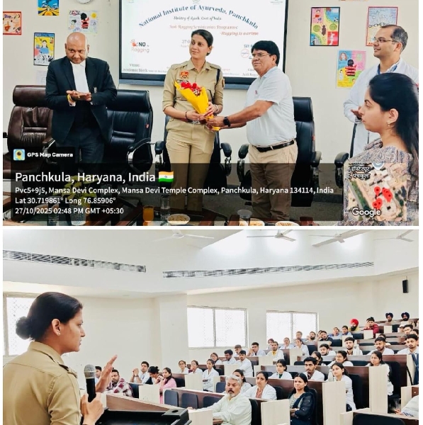 राष्ट्रीय आयुर्वेद संस्थान, पंचकूला ने रैगिंग विरोधी जागरूकता कार्यक्रम का किया आयोजनपंचकूला, 28 अक्टूबर 2025: माननीय कुलपति प्रो. संजीव शर्मा के नेतृत्व में राष्ट्रीय आयुर्वेद संस...