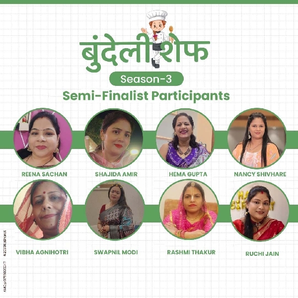*बुंदेली शेफ सीज़न 3: 14 में से 8 प्रतिभागियों ने बनाई सेमीफाइनल में जगह*या*हुनर की करछी चलाने 8 महिला प्रतिभागी सेमी फाइनल में*- 26 नवंबर को मूँग दाल आधारित व्यंजनों पर होगा...