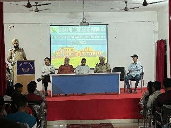 Ludhiana (Verma) - A one hour road safety awareness program was conducted at Baba Farid College of Pharmacy, Mullanpur, Ldh by NGO Safe Drive Stay Alive today. Incharge Traffic Edu...